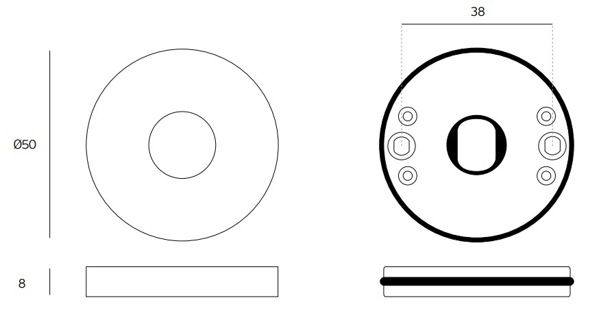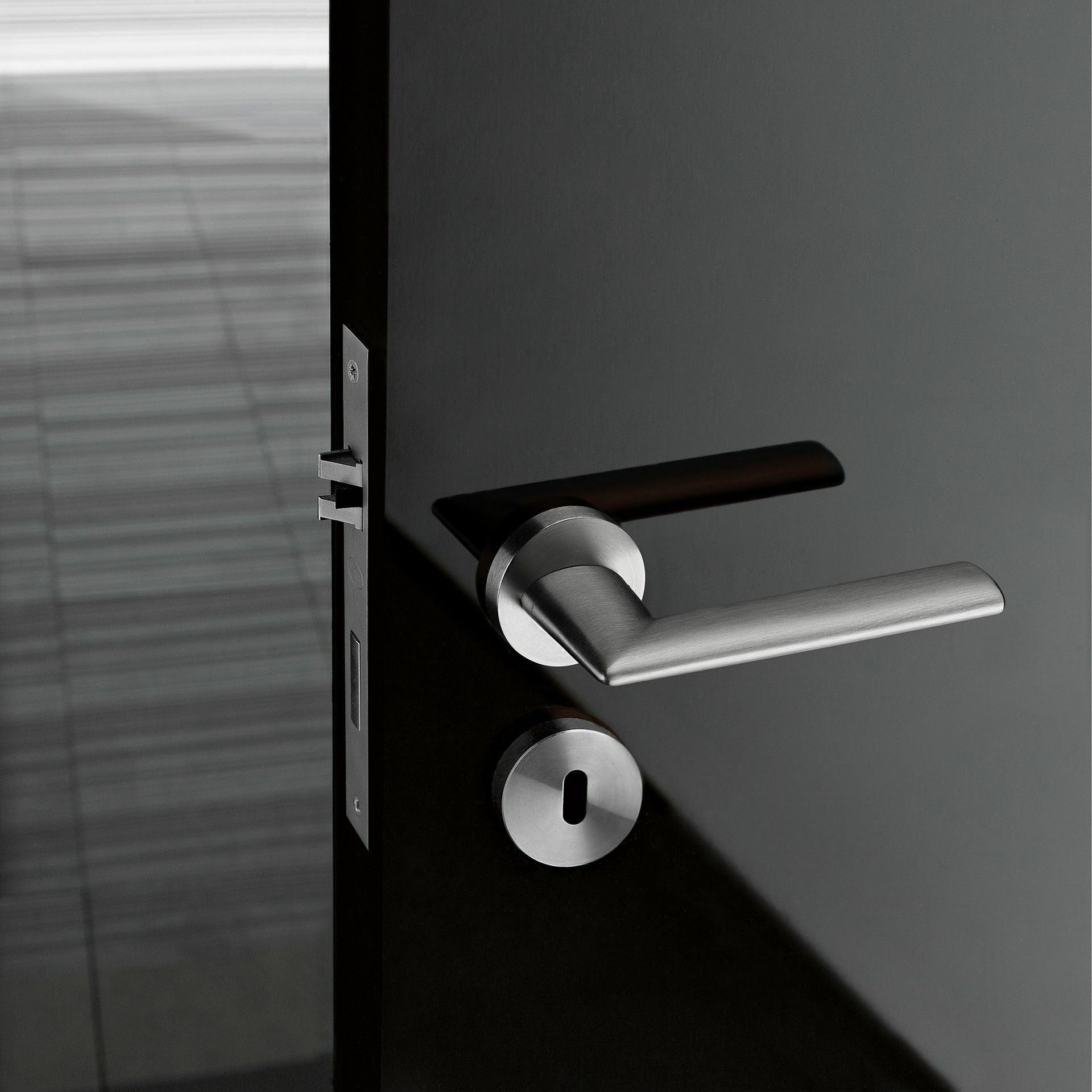 Rozetová klika na interiérové dveře s kulatou rozetou je vyrobená z vysoce kvalitní nerezavějící oceli, známé jako nerez a je povrchově upravená. Rozeta má průměr 50 mm a tloušťku 8 mm.