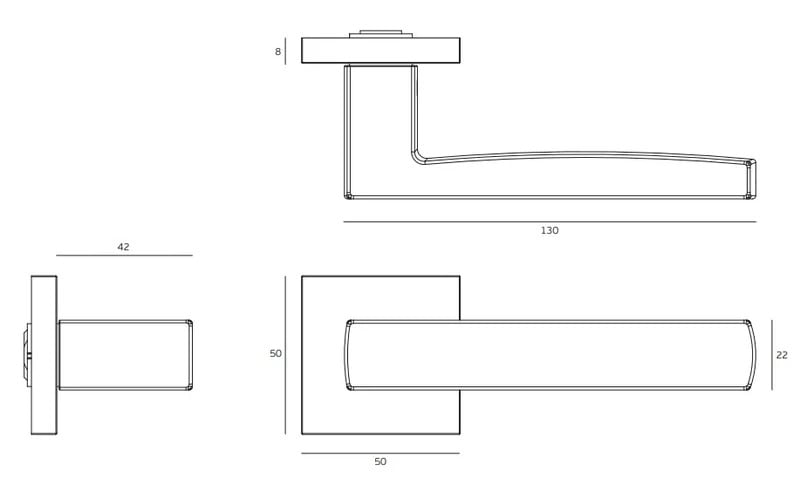 Rozetová klika na interiérové dveře s hranatou rozetou je vyrobena z vysoce kvalitní nerezavějící oceli, známé jako nerez a je povrchově upravena.