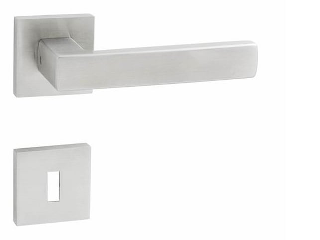 Rozetová klika na interiérové ​​dveře s hranatou rozetou je vyrobena z vysoce kvalitní nerezavějící oceli, známé jako nerez a je povrchově upravena.