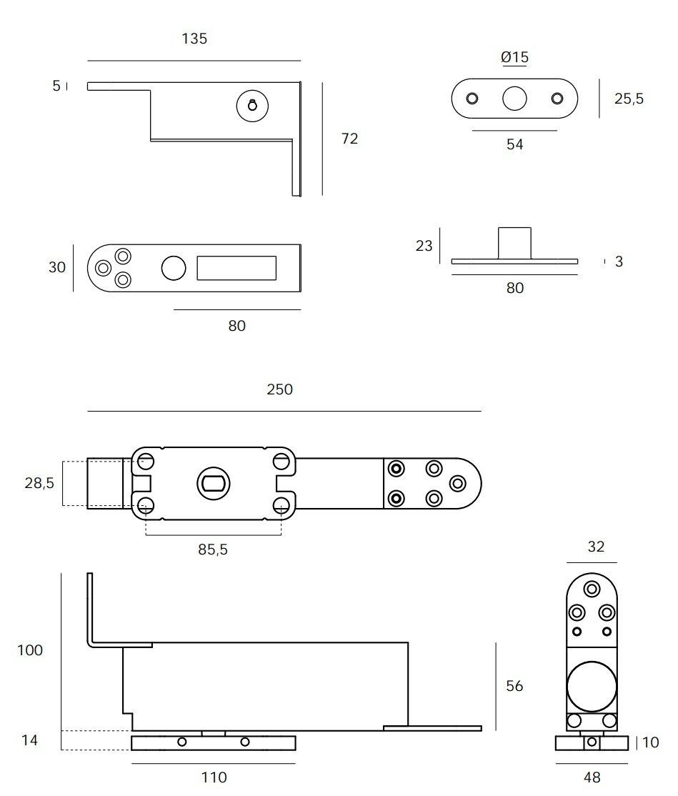 Sada hydraulických otočných pivotů pro dřevěné dveře.