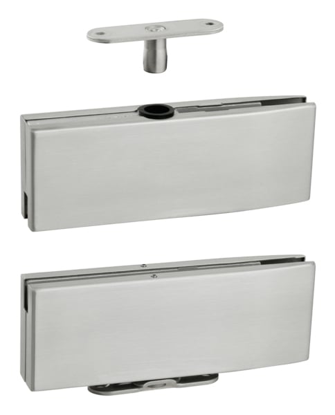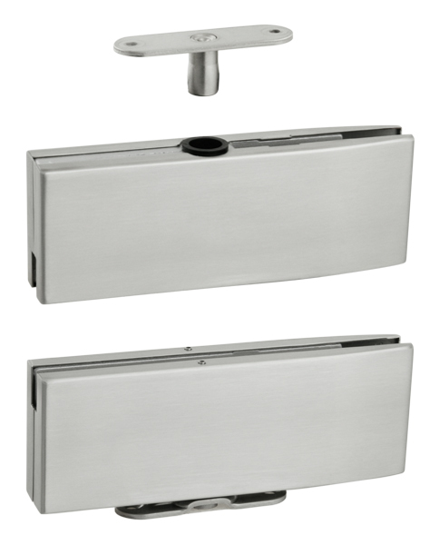 Pružinový pivotový samouzavírací set s aretací je vyroben z vysoce kvalitní nerezavějící oceli, známé jako nerez a je povrchově upraven.