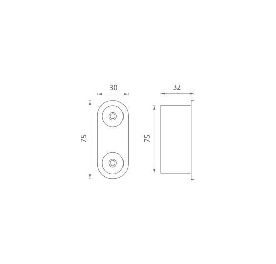 Oválné madélko má výšku 75 mm, šířku 30 mma zádlab 32 mm. Upevnění samořezným šroubem - součástí balení jsou samořezné šrouby v příslušném počtu. Cena je uvedena za kus.