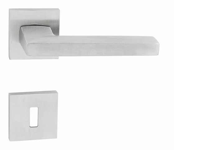Rozetová klika na interiérové ​​dveře s hranatou rozetou je vyrobena z vysoce kvalitní nerezavějící oceli, známé jako nerez a je povrchově upravena.