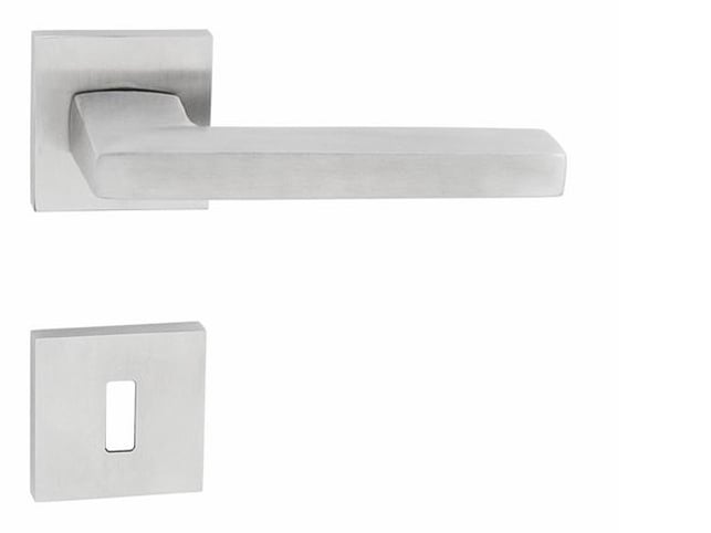Rozetová klika na interiérové dveře s hranatou rozetou je vyrobena z vysoce kvalitní nerezavějící oceli, známé jako nerez a je povrchově upravena.