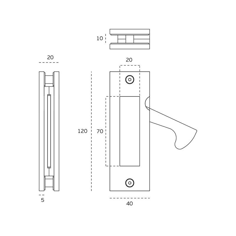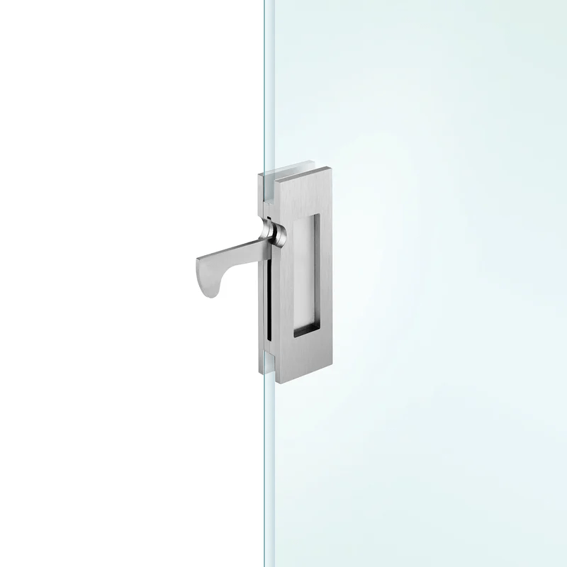 Hranatá mušle bez otvoru na posuvné skleněné dveře je vyrobená z kvalitního materiálu nerezavějící oceli a je povrchově upravená.