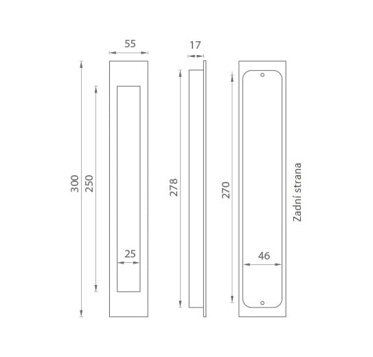 Hranatá mušle je vyrobena z vysoce kvalitní nerezavějící oceli, známé jako nerez a je povrchově upravena. Mušle má výšku 300 mm, šířku 55 mm, zádlab 17 mm a celkovou tloušťku 19 mm. Krytka s pružinou. Montáž mušle lepením. Cena je uvedena za kus.