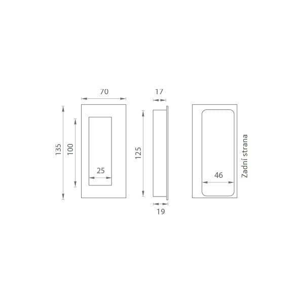 Hranatá mušle je vyrobena z vysoce kvalitní nerezavějící oceli, známé jako nerez a je povrchově upravena. Mušle má výšku 135 mm, šířku 70 mm, zádlab 17 mm a celkovou tloušťku 19 mm. Montáž mušle lepením. Cena je uvedena za kus.