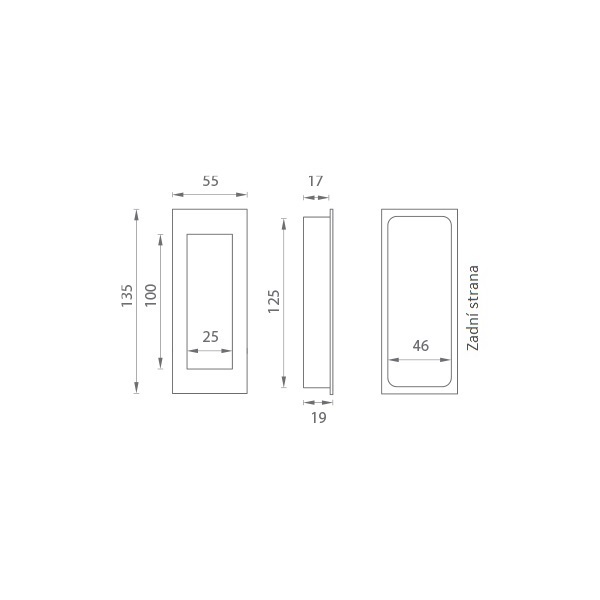 Hranatá mušle je vyrobena z vysoce kvalitní nerezavějící oceli, známé jako nerez a je povrchově upravena. Mušle má výšku 135 mm, šířku 55 mm, zádlab 17 mm a celkovou tloušťku 19 mm. Montáž mušle lepením. Cena je uvedena za kus.
