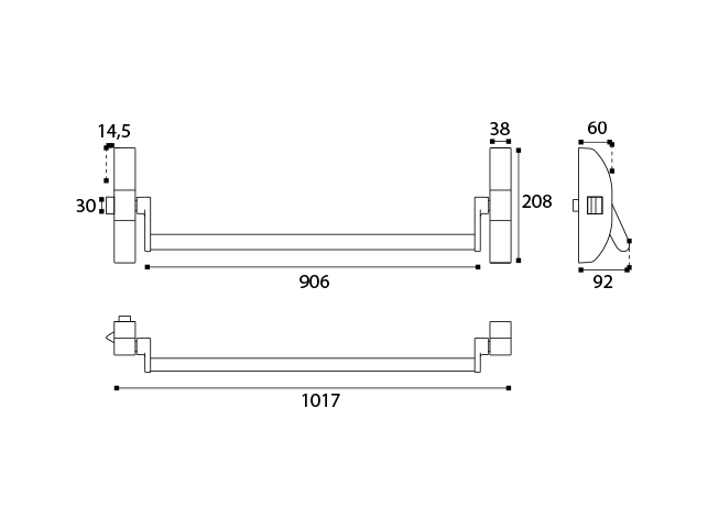 Standardní balení panikových kování je určené pro max. šířku dveřního křídla 1260 mm. Pro dveřní křídlo širší než 1260 mm až do šířky 1500 mm je potřeba zakoupit oválnou tyč IN.20.961.