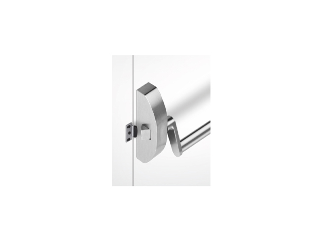 Sada jednobodového panikového kování s nerezovou štítovou klikou a cylindrickou vložkou.