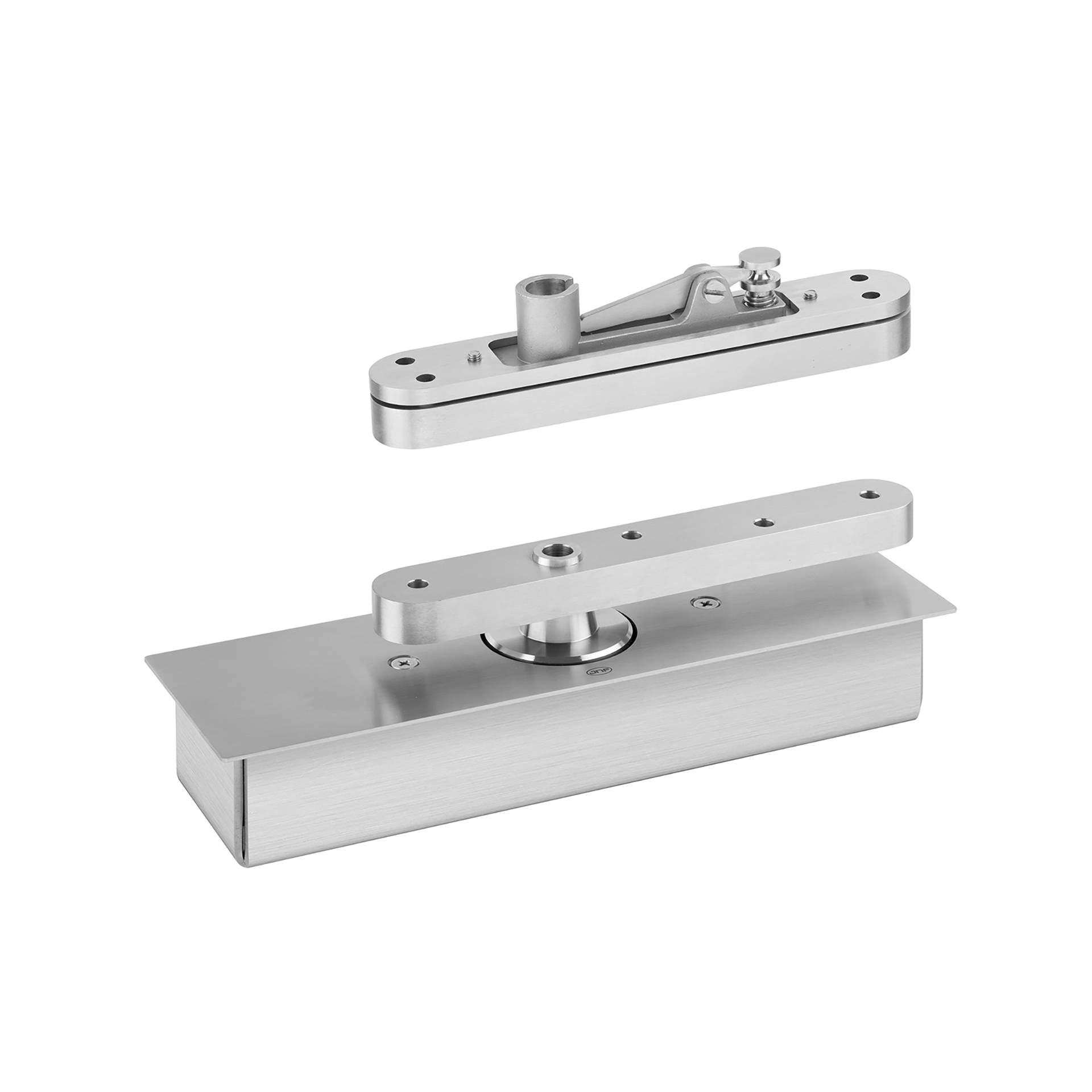 Kompletní sada otočných ložiskových pivotů pro těžké jednokřídlové dveře.