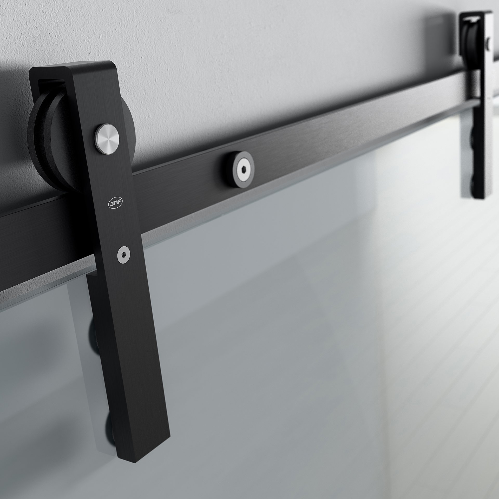 Kování pro posuvné skleněné dveře od renomovaného portugalského výrobce JNF. Systém PS Charriot je určen na dřevěné dveře šířky 600 - 900 mm s maximální váhou dveřního křídla do 60 kg. Skleněné dveře nejsou součástí posuvného systému.