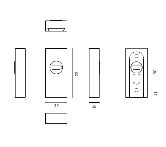 Bezpečnostní úzka oválná rozeta s překrytím cylindrické vložky je vyrobená z kvalitního materiálu, nerezavějící oceli a je povrchově upravená.