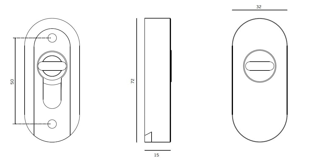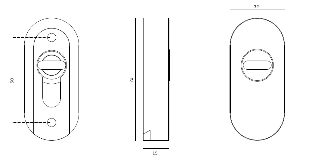 Bezpečnostní úzká oválná rozeta s překrytím cylindrické vložky je vyrobená z kvalitního materiálu, nerezavějíci oceli a je povrchově upravená.