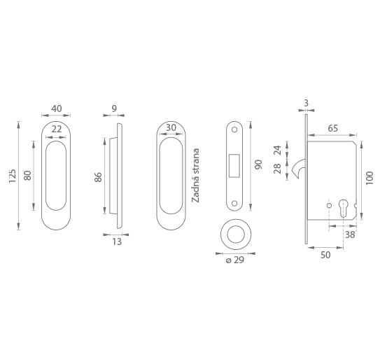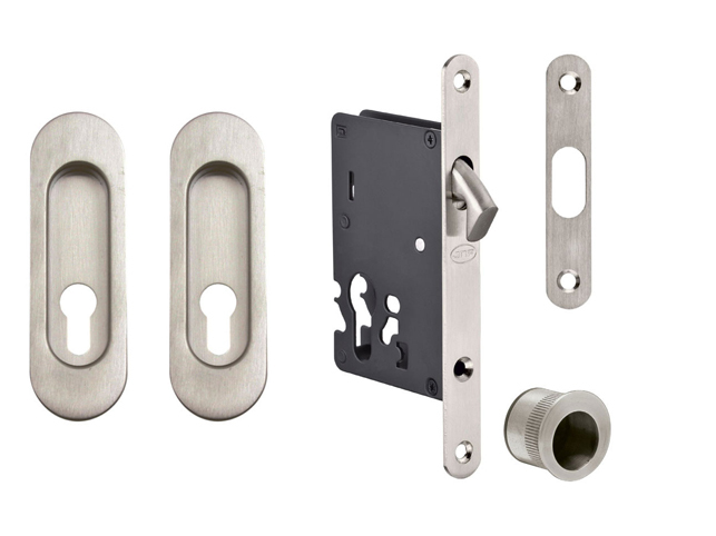 Kulatý set na posuvné dveře s otvorem pro cylindrickou vložku (PZ).