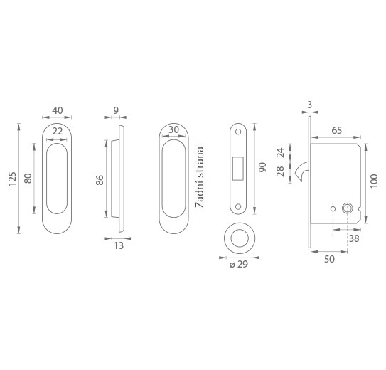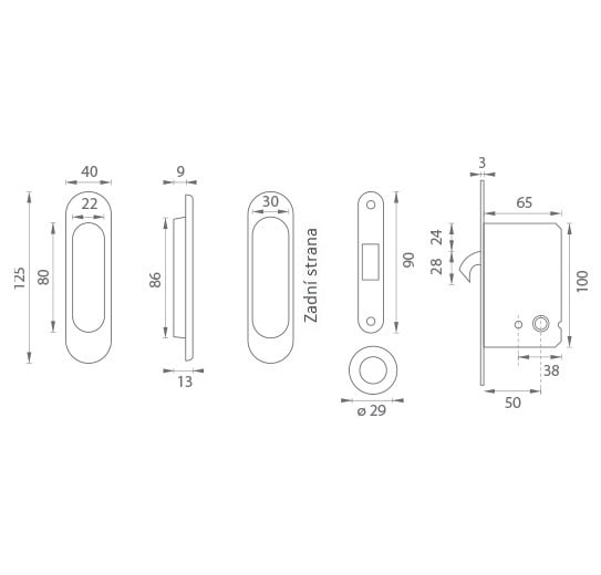 Balení obsahuje: zámek JNF - IN.20.915.S, pár mušlí - FT - 3665AR, madélko ATZ - 3918