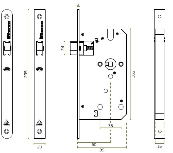 Zadlabací zámek do přechodových dveří. Zámek je vhodný pro dveře s intenzívním používáním.