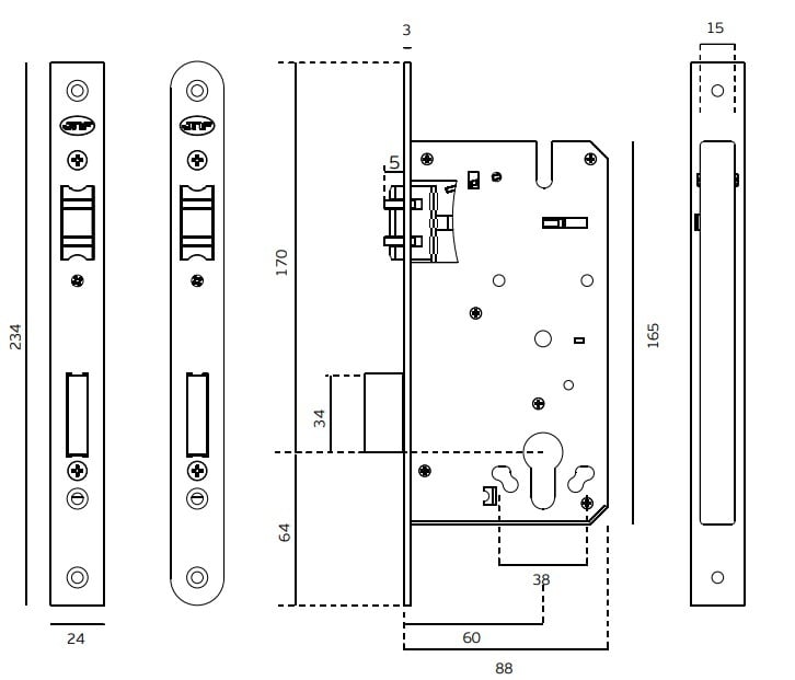 Dormas: 60 mm (vzdálenost osy kliky od lišty zámku)