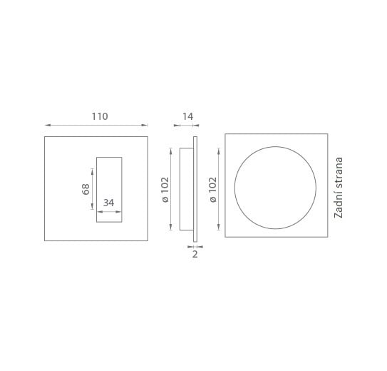 Zapuštěná hranatá mušle je vyrobena z vysoce kvalitní nerezavějící oceli, známé jako nerez a je povrchově upravena. Mušle má výšku 110 mm, šířku 110 mm, zádlab 14 mm a celkovou tloušťku 16 mm. Montáž mušle lepením. Cena je uvedena za kus.