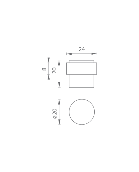 Zarážka dveří na podlahu je vyrobena z vysoce kvalitní nerezavějící oceli, známé jako nerez a je povrchově upravena. Zarážka má průměr 20 mm a výšku 20 mm, montáž zarážky samořezným šroubováním / metrický závit.