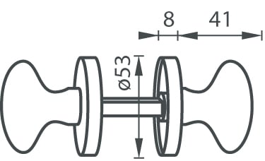 Dveřní přímá koule na kulaté rozetě je vyrobena z hliníku a je povrchově upravena. Koule má průměr 53 mm a kulatá rozeta má tloušťku 8 mm.