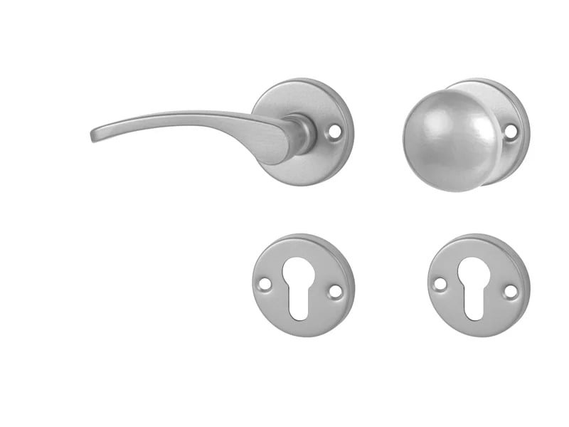 Rozetová klika na interiérové ​​dveře s kulatou rozetou je vyrobena z hliníku a je povrchově upravena. Rozeta má průměr 54 mm a tloušťku 8 mm.