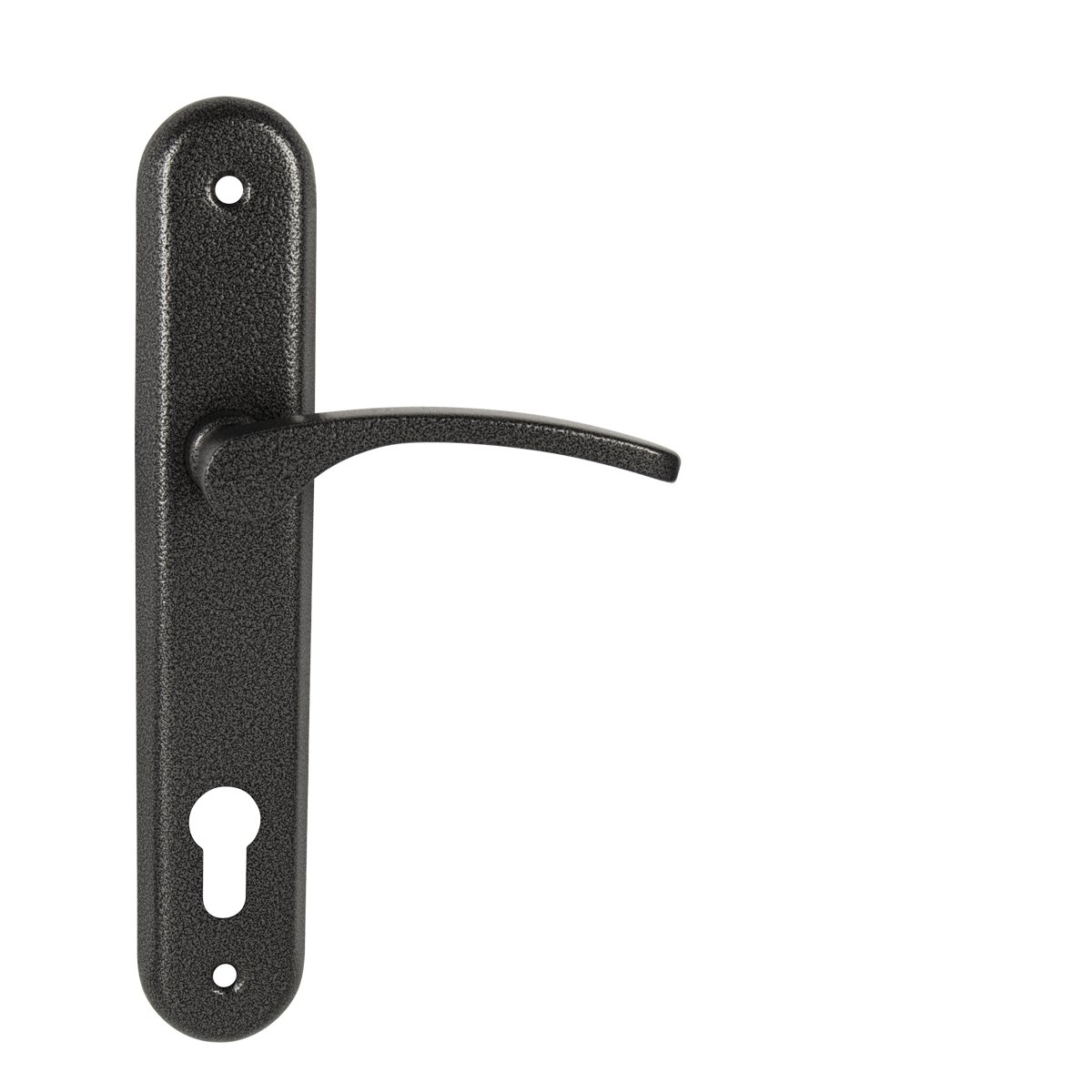 Štítová klika na interiérové ​​dveře s oválným štítem je vyrobena z hliníku a je povrchově upravena. Oválný štít má rozměry 42 mm x 230 mm a klika neobsahuje vratný mechanismus.