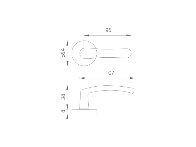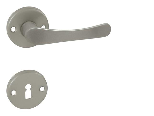 Rozetová klika na interiérové ​​dveře s kulatou rozetou je vyrobena z hliníku a je povrchově upravena. Rozeta má průměr 54 mm a tloušťku 8 mm.