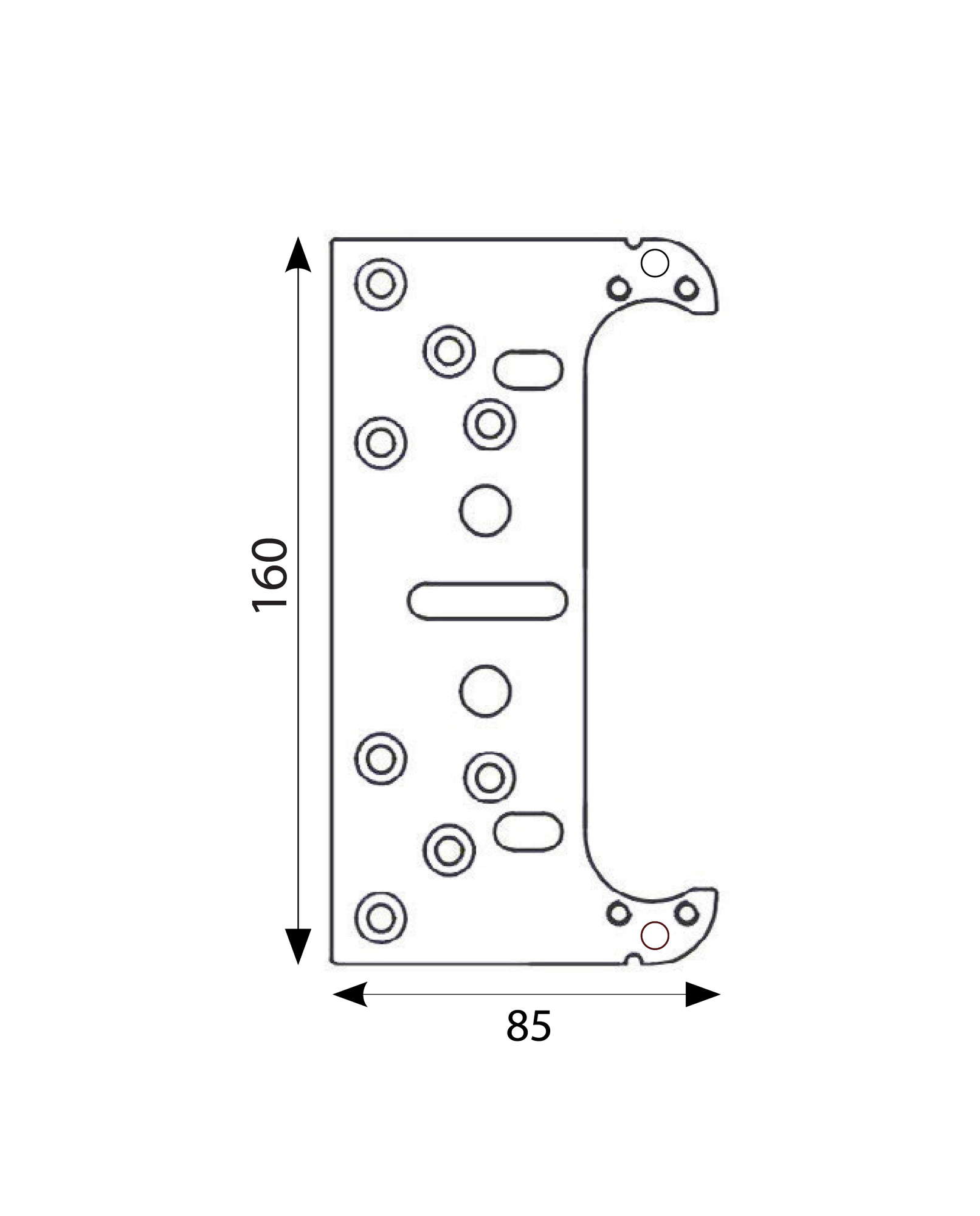 Nastavitelná montážní podložka k závěsu K5080 má rozměry 85 mm x 160 mm.