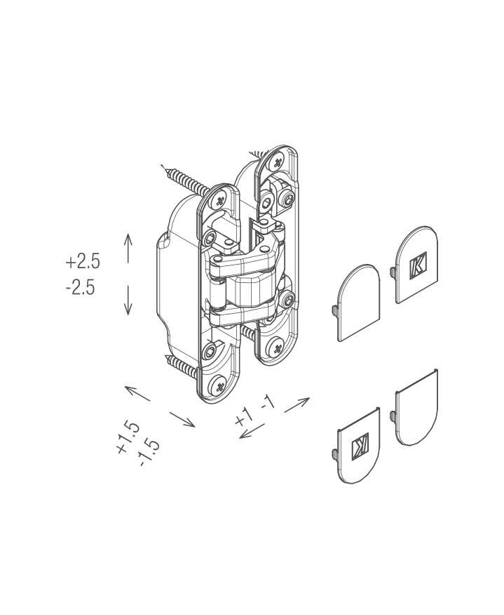 Kompletně 3D nastavitelný závěs pro bezfalcové dveře s masivní dřevěnou, obložkovou, ocelovou nebo hliníkovou zárubní.