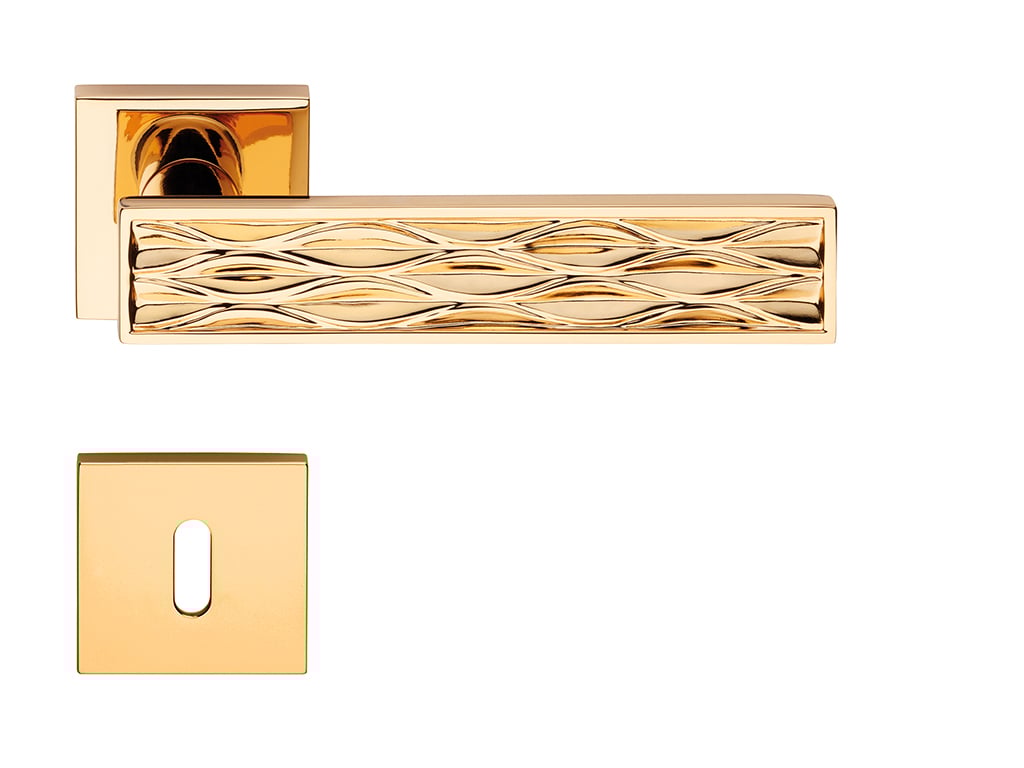 Rozetová klika na interiérové dveře s hranatou rozetou je vyrobena z materiálů vysoké kvality - mosaz a je povrchově upravena.