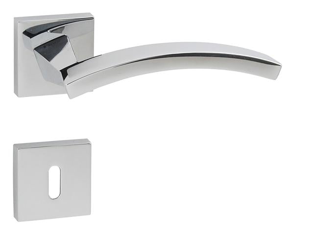 Rozetová klika na interiérové dveře s hranatou rozetou je vyrobena z materiálů vysoké kvality - mosaz a je povrchově upravena. Rozeta má rozměry 50 mm x 50 mm.
