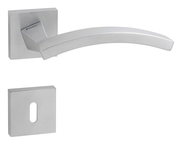 Rozetová klika na interiérové dveře s hranatou rozetou je vyrobena z materiálů vysoké kvality - mosaz a je povrchově upravena. Rozeta má rozměry 50 mm x 50 mm.
