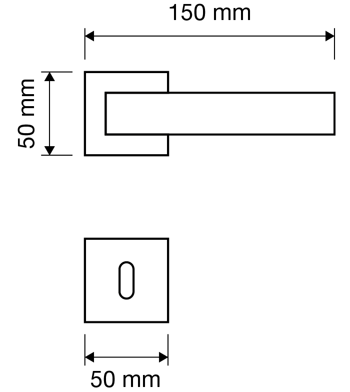 Rozetová klika na interiérové dveře s hranatou rozetou je vyrobena z materiálů vysoké kvality - mosaz a je povrchově upravena. Rozeta má rozměry 50 mm x 50 mm.