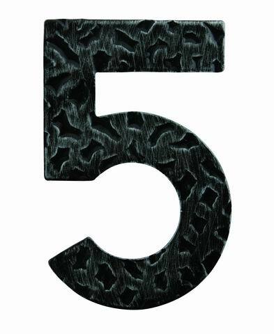 Domovní číslice je vyrobená z kovaného železa, glazovaná patinou.