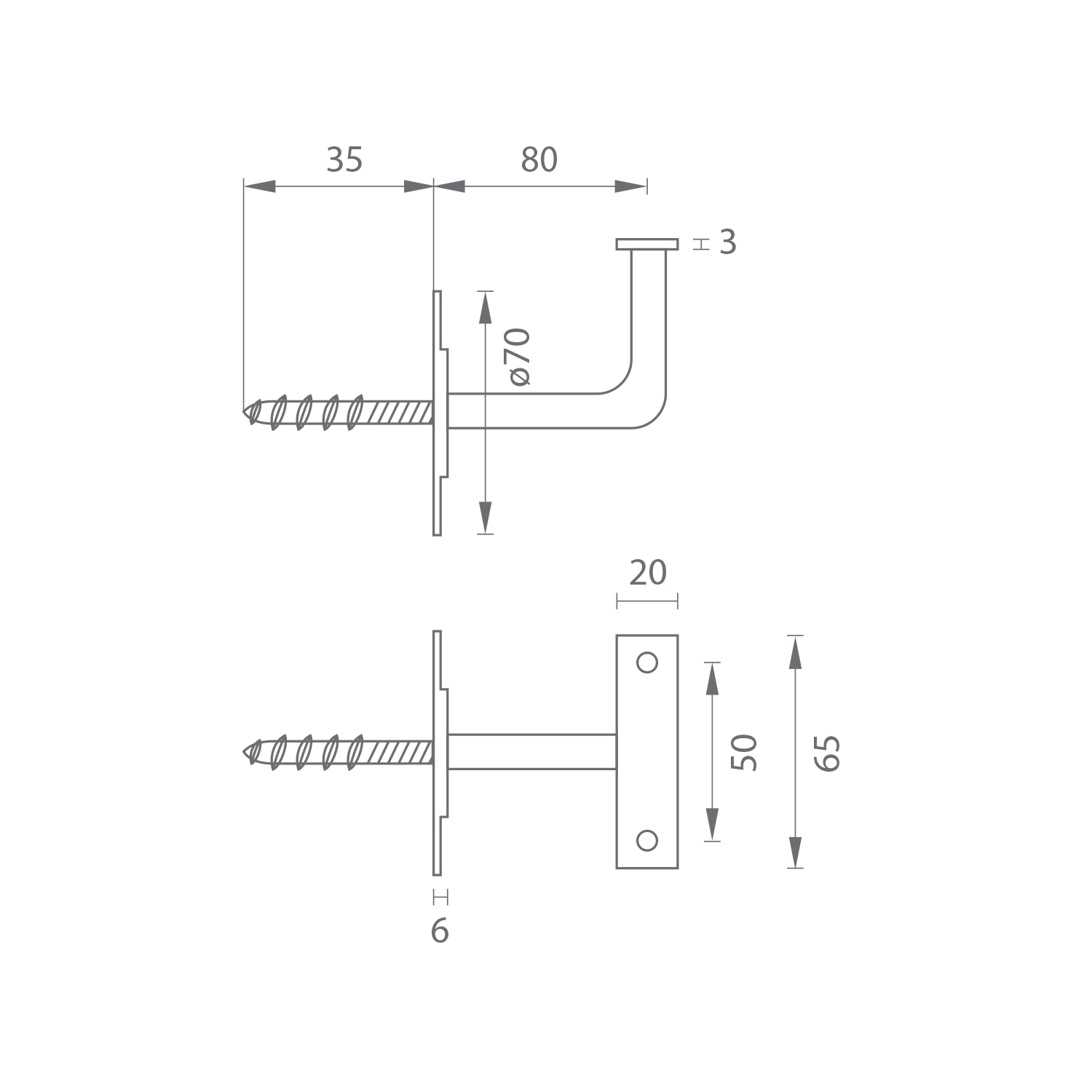 Držák zábradlí s rovnou plochou je vyrobený z kvalitní nerezavějící oceli s povrchovou úpravou.