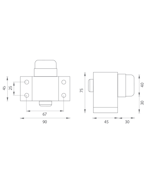 Průmyslová zarážka je vyrobena z hliníku a povrchově upravena, s vnitřní pružinou, montáž zarážky samořezným šroubováním.