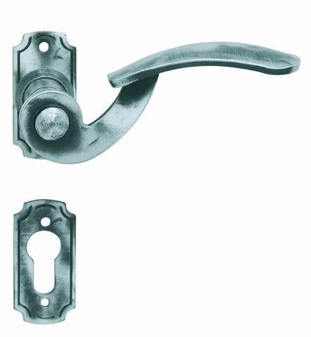 Rozetová klika na interiérové dveře s kovanou rozetou je vyrobena z kovaného železa a je povrchově upravena.