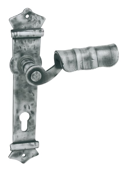 Štítová klika na interiérové ​​dveře s kovaným štítem je vyrobena z kovaného železa a je povrchově upravena.