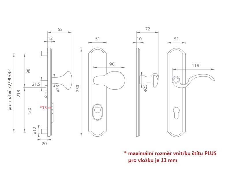 Maximální postor v překrytí štítu PLUS pro vložku je 13 mm.
