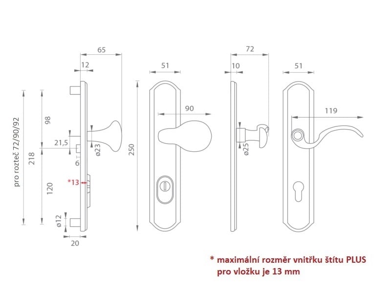 Maximální postor v překrytí štítu PLUS pro vložku je 13 mm.