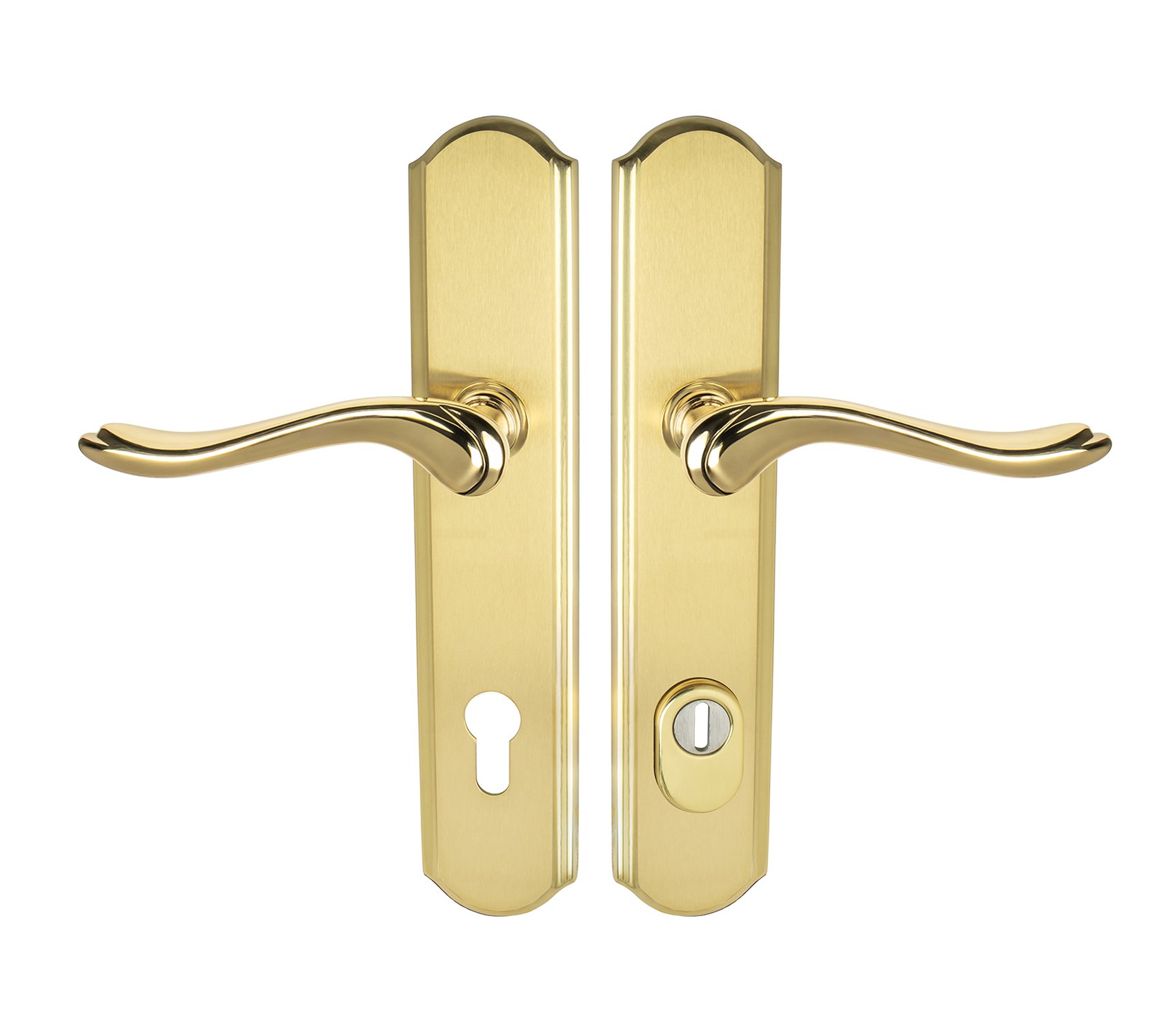 MI - LYON/ROMEO PLUS - SO OLV/OLS - Mosaz leštěná lakovaná / mosaz broušená - PZ PLUS s otvorem pro vložku - 92 mm - koule/klika levá