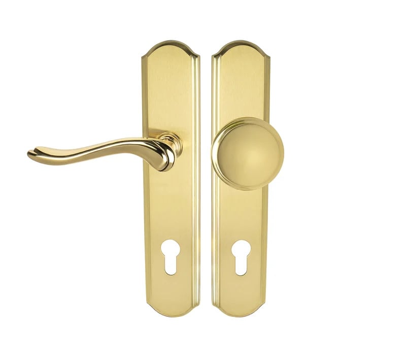 MI - LYON/ROMEO - SO OLV/OLS - Mosaz leštěná lakovaná / mosaz broušená - PZ otvor pro vložku - 90 mm - koule/klika pravá