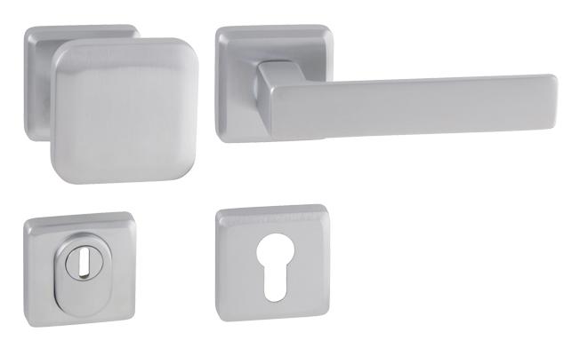Rozetová klika na vchodové a bezpečnostní dveře se zpevněnou hranatou rozetou bez překrytí cylindrické vložky je vyrobena z materiálů vysoké kvality - mosaz a je povrchově upravena. Hranatá rozeta má rozměry 53 mm x 53 mm a tloušťku 12 mm.
