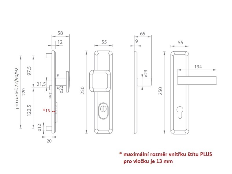 Maximální prostor v překrytí štítu PLUS pro vložku je 13 mm.