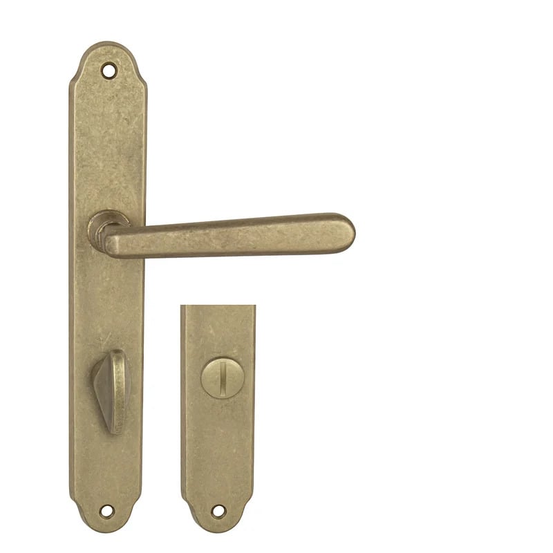 Štítová klika na interiérové ​​dveře s rustikálním štítem je vyrobena z materiálů vysoké kvality - mosaz a je povrchově upravena. Rustikální štít má rozměry 36 mm x 238 mm.