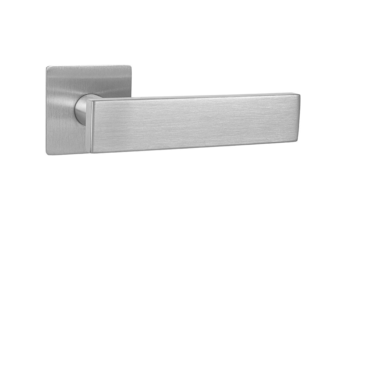 Rozetová klika na interiérové ​​dveře s magnetickou plochou hranatou rozetou je vyrobena z vysoce kvalitní nerezavějící oceli, známé jako nerez a je povrchově upravena. Rozeta má rozměry 55 mm x 55 mm a tloušťku jen 3 mm. Je barevně stabilní a odolná vůči opotřebení. Kování je testováno podle normy EN 1906 na 200 000 cyklů.