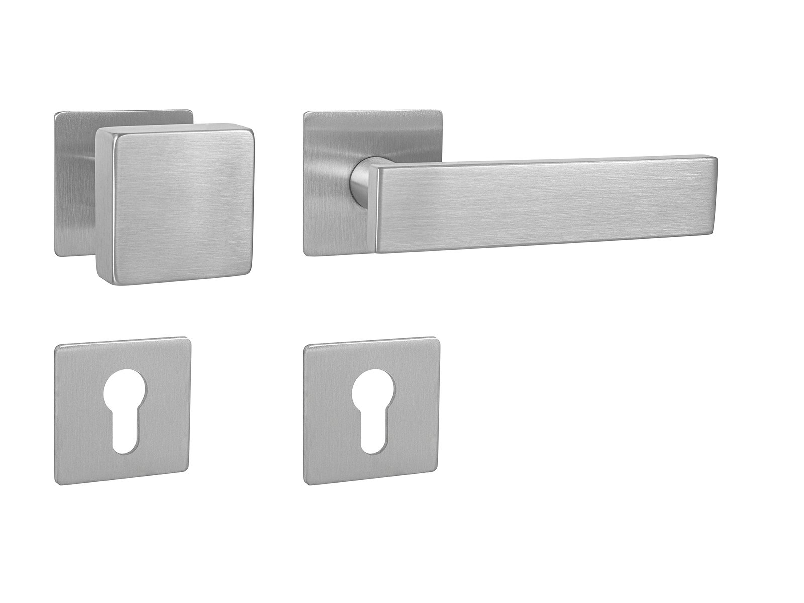 Rozetová klika na interiérové ​​dveře s magnetickou plochou hranatou rozetou je vyrobena z vysoce kvalitní nerezavějící oceli, známé jako nerez a je povrchově upravena. Rozeta má rozměry 55 mm x 55 mm a tloušťku jen 3 mm. Je barevně stabilní a odolná vůči opotřebení. Kování je testováno podle normy EN 1906 na 200 000 cyklů.