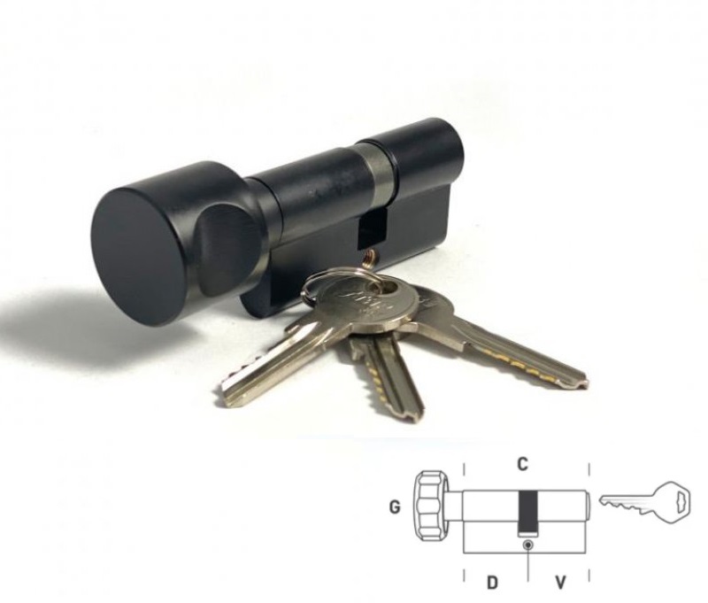 MP - Bezpečnostní vložka 70S - s knoflíkem (bez karty) BS - Černá matná - D 30 + V 35 mm - knoflík na kratší straně (2/2)