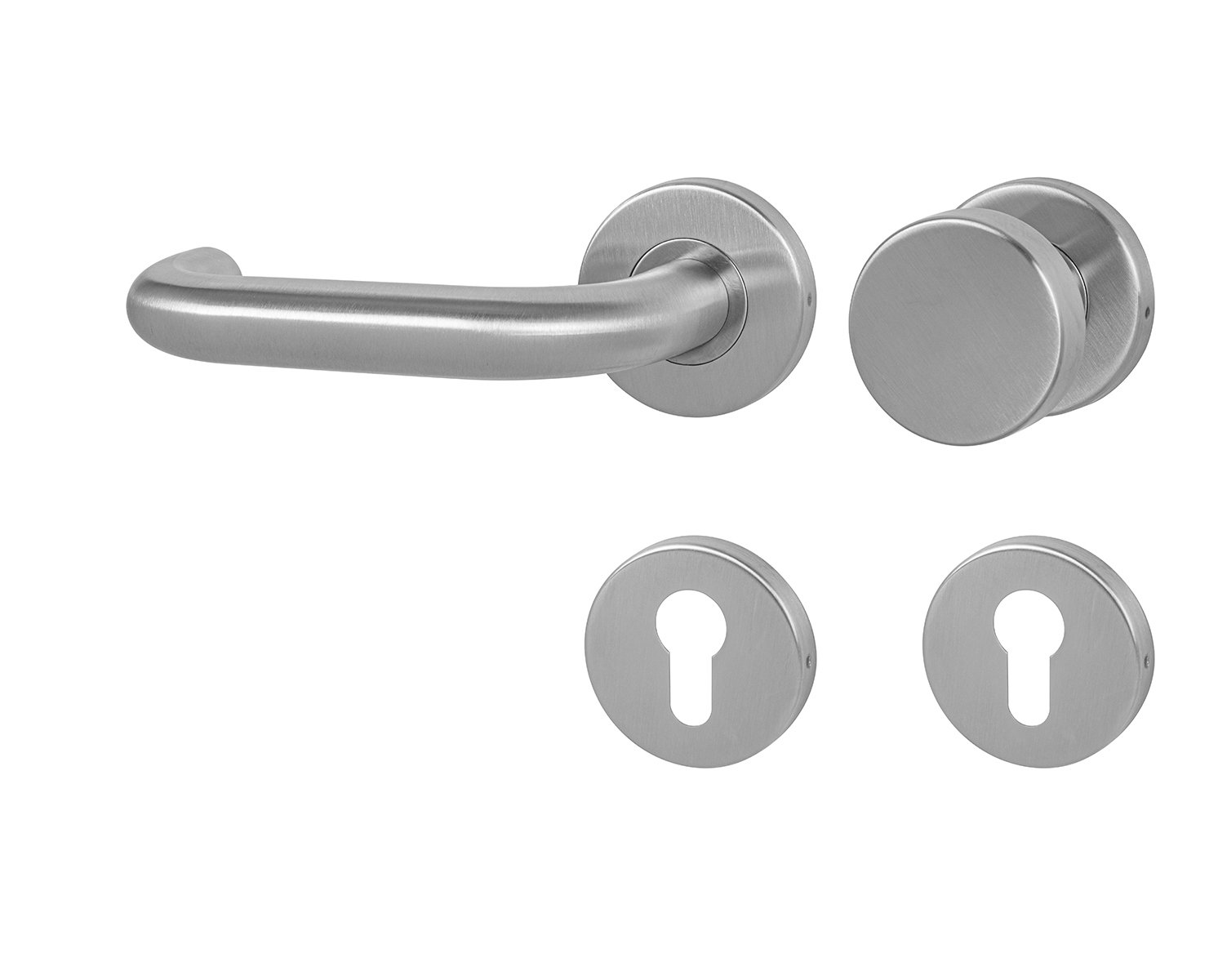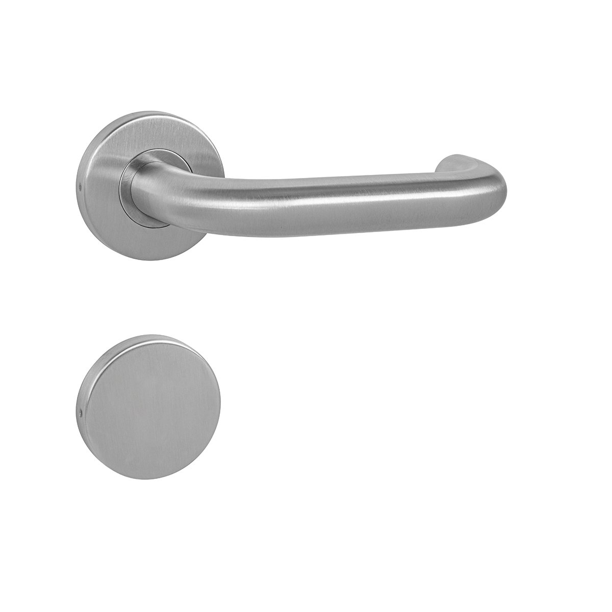 Rozetová klika na interiérové ​​dveře s kulatou rozetou z kvalitní nerezavějící oceli, známé jako nerez a je povrchově upravena. Rozeta má průměr 54 mm a tloušťku 9 mm. Je barevně stabilní a odolná vůči opotřebení. Kování je testováno dle normy ČSN EN 1906: 2012 na 200 000 cyklů.